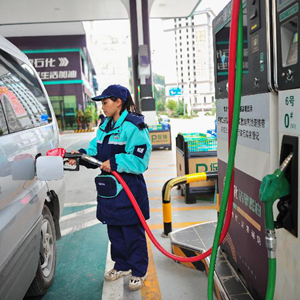 11月7日,贵州省从江县一加油站工作人员在给汽车加油。新华社发(卢忠南 摄)