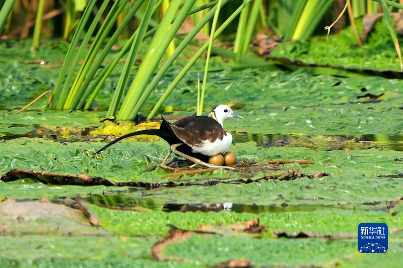 杭州湾湿地公园的水雉。新华网发 浙江杭州湾国家湿地公园供图