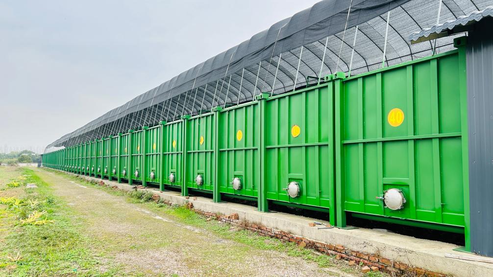 “这是微滤机,上面覆盖着200目/平方英寸的微孔筛网,用于过滤鱼的粪便。”江求智说,把鱼粪过滤出来,让集装箱里的水更干净,可以有效降低病害,而且过滤出来的鱼粪还可以用作肥料,为农场里种植的果蔬提供养分。而剩余的尾水则会经过4道工序净化,重新回到集装箱,对周边环境几乎没有污染。