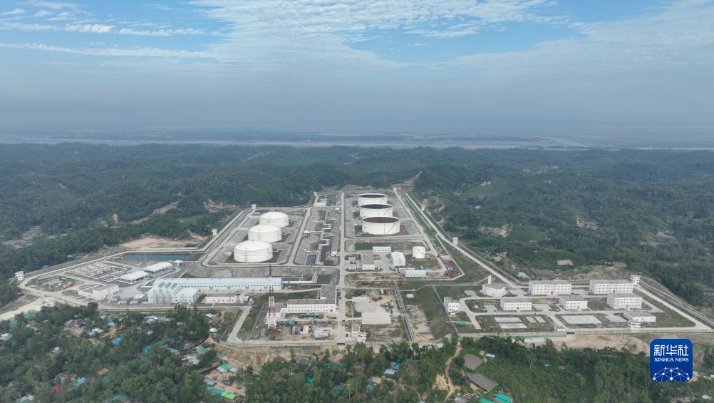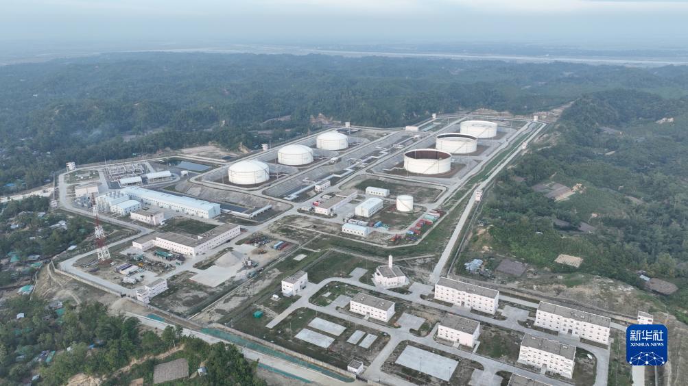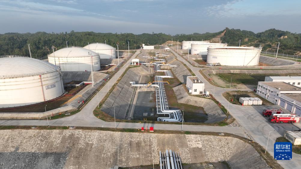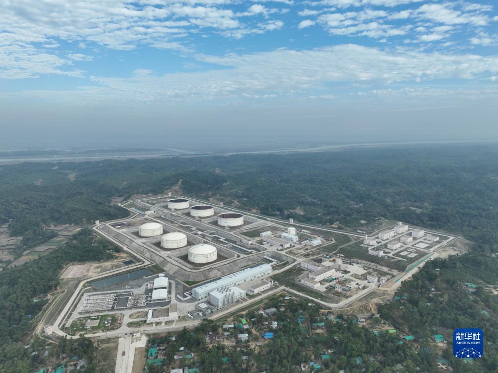 这是12月3日在孟加拉国莫海什卡利拍摄的单点系泊及双线管道系统工程项目场站(无人机照片)。新华社发(孟加拉国单点系泊及双线管道系统工程项目部供图)