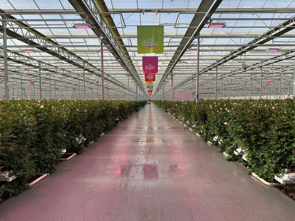甘肃临夏百益亿农国际鲜花港玫瑰工厂一景。 新华社记者 张文静 摄