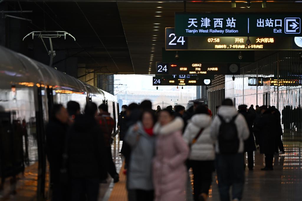 12月18日,G8842次列车停靠在天津西站站台。新华社记者李然摄