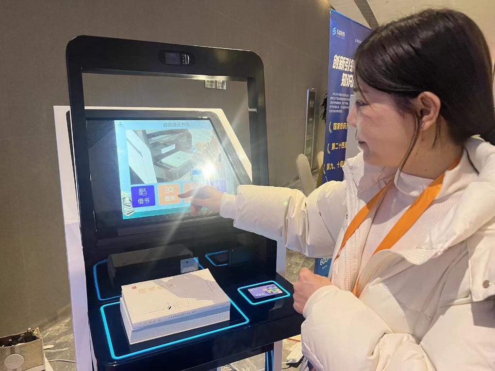 2023年12月18日,东超科技的“可交互空中成像技术”被应用于非接触可操作自助借还书机中。新华社记者刘美子 摄