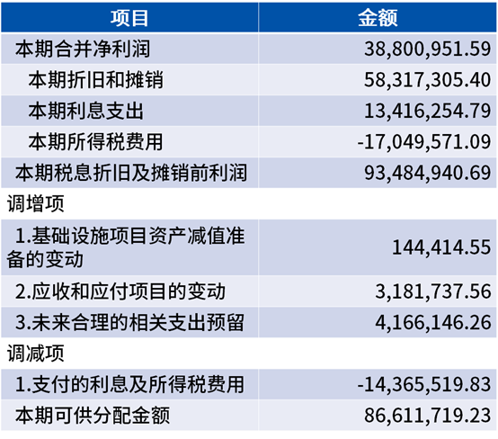 某公募REITs的可供分配金额计算过程