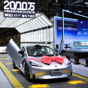 在位于广东省广州市的广汽埃安第一智造中心拍摄的中国新能源汽车第2000万辆下线活动现场(2023年7月3日摄)。新华社记者 邓华 摄