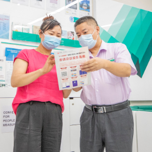 农行重庆江北石马河支行的客户经理向批发市场的商户介绍普惠金融贷款相关政策和产品。新华社记者黄伟 摄