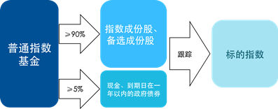 普通指数基金是将基金资产的绝大部分投资于标的指数的成份股及备选成份股,合同会约定投资于前两者的资产不低于基金净资产的90%: