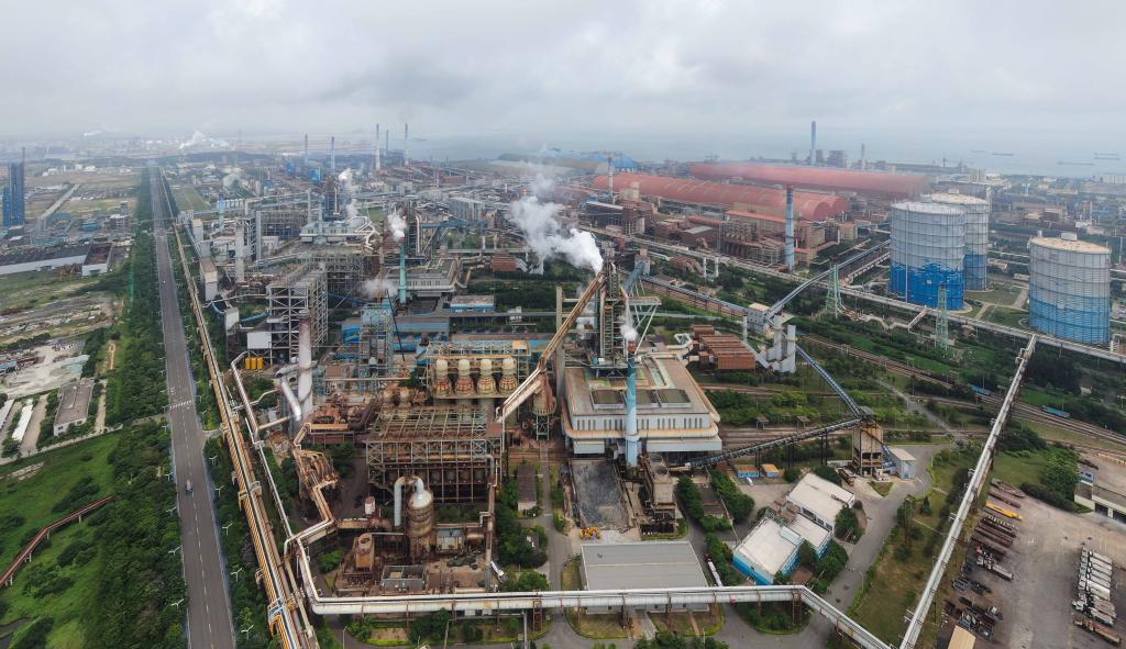 广东省湛江市东海岛拍摄的宝钢湛江钢铁厂区(2023年5月25日摄,无人机照片)。新华社记者邓华 摄