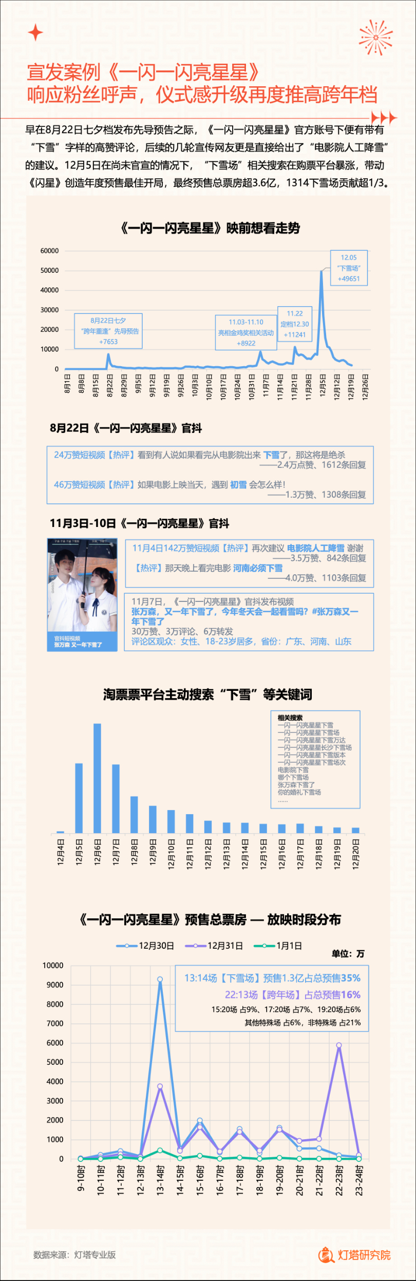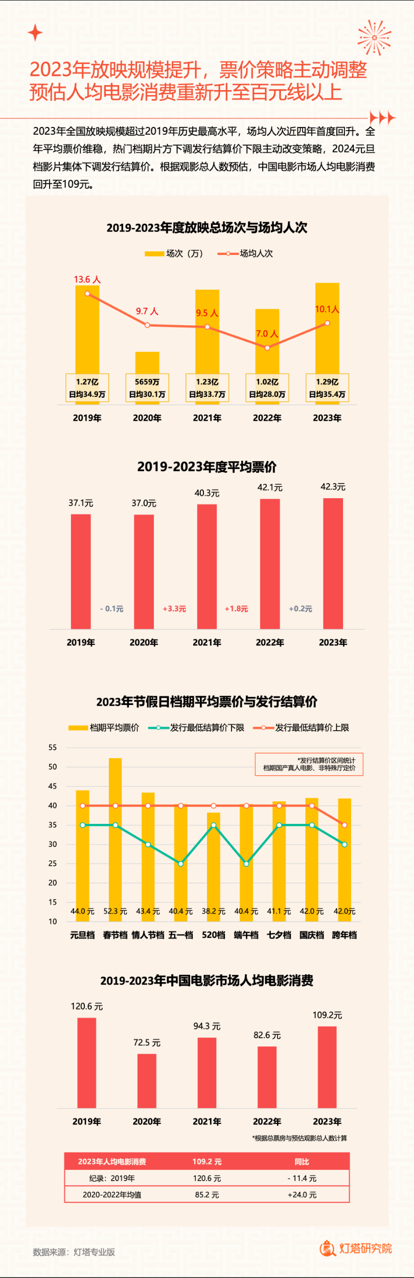 新华网北京1月2日电(记者闫雨昕)2024年1月1日,灯塔研究院联合新华网发布《2023中国电影市场年度盘点报告》(以下简称“报告”),从市场核心数据、观影消费习惯、热门档期与周末档、宣发新风向、用户画像等方面进行分析。