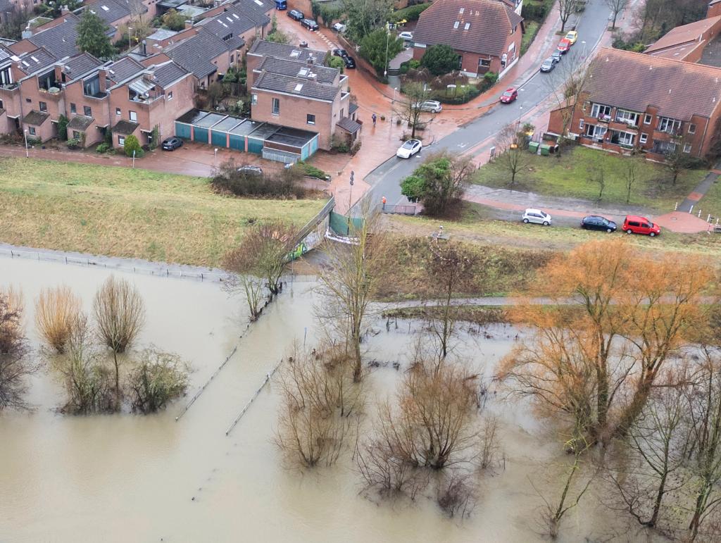 这是2024年1月5日在德国汉诺威市郊拍摄的被洪水淹没的区域(无人机照片)。新华社发(亨宁·舍芬摄)