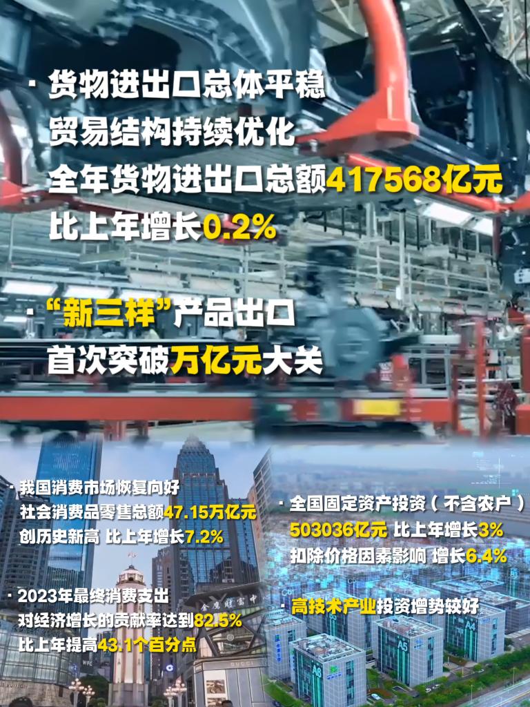 作为拉动经济增长的“三驾马车”之一,2023年中国外贸顶住外部压力,交出一份规模稳中有增、质量优中有升的“成绩单”,其中多个亮眼“得分项”彰显中国外贸向好发展态势。