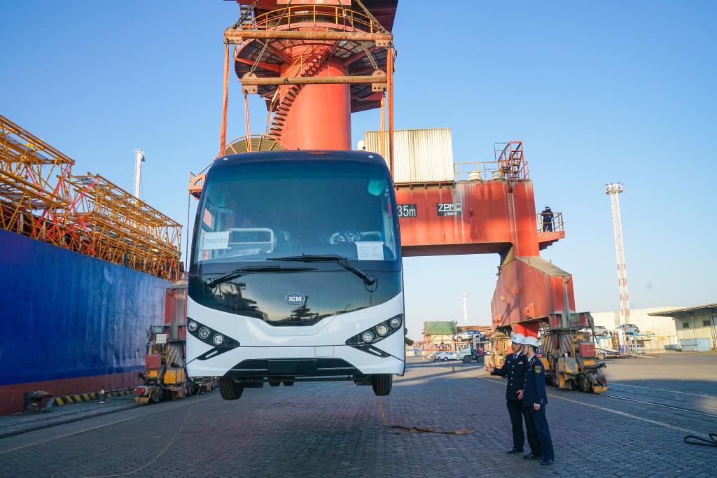 新华社福州1月19日电(记者周义)1月18日下午,30辆锂电池新能源客车在厦门现代码头陆续吊装上中国香港籍散货船“含和”轮,被运往“一带一路”沿线重要港口阿联酋迪拜的杰拜勒阿里港,这是今年厦门首批乘散货船海运出口的锂电池新能源客车。