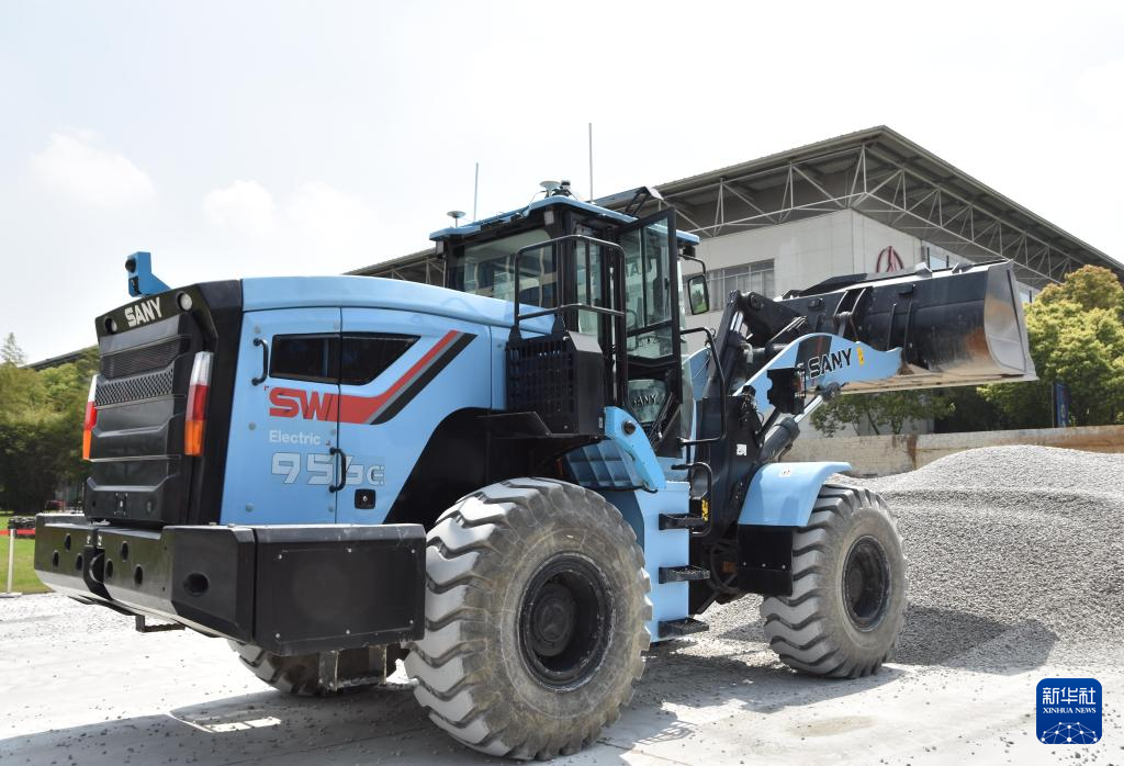 在湖南长沙三一集团厂区,三一电动化装载机演示无人作业(2023年3月31日摄)。新华社记者 白田田 摄