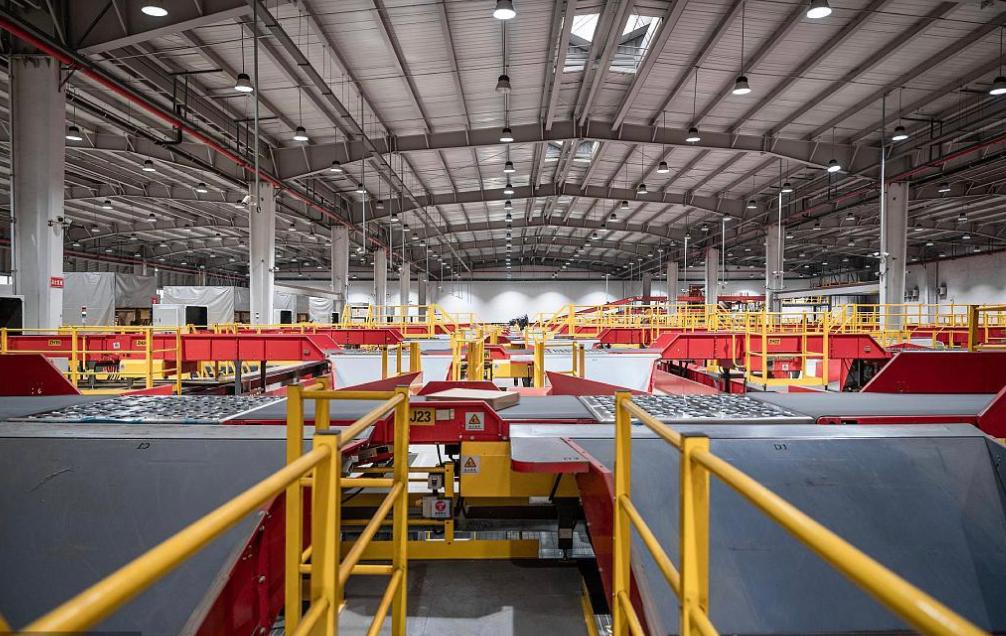 图为江西万佶智慧物流产业园内的自动分拣设备。新华社发(肖振华摄)