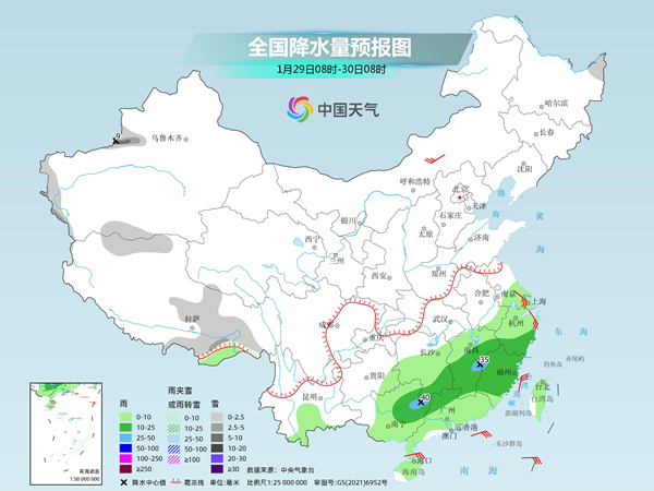 今天江南华南雨势增强 31日起中东部迎大范围雨雪天气