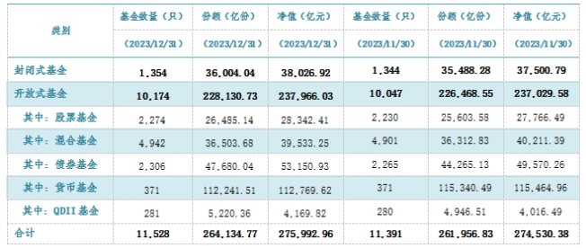 中国基金业协会最新数据显示,截至2023年12月底,境内公募基金资产净值规模达27.60万亿元。