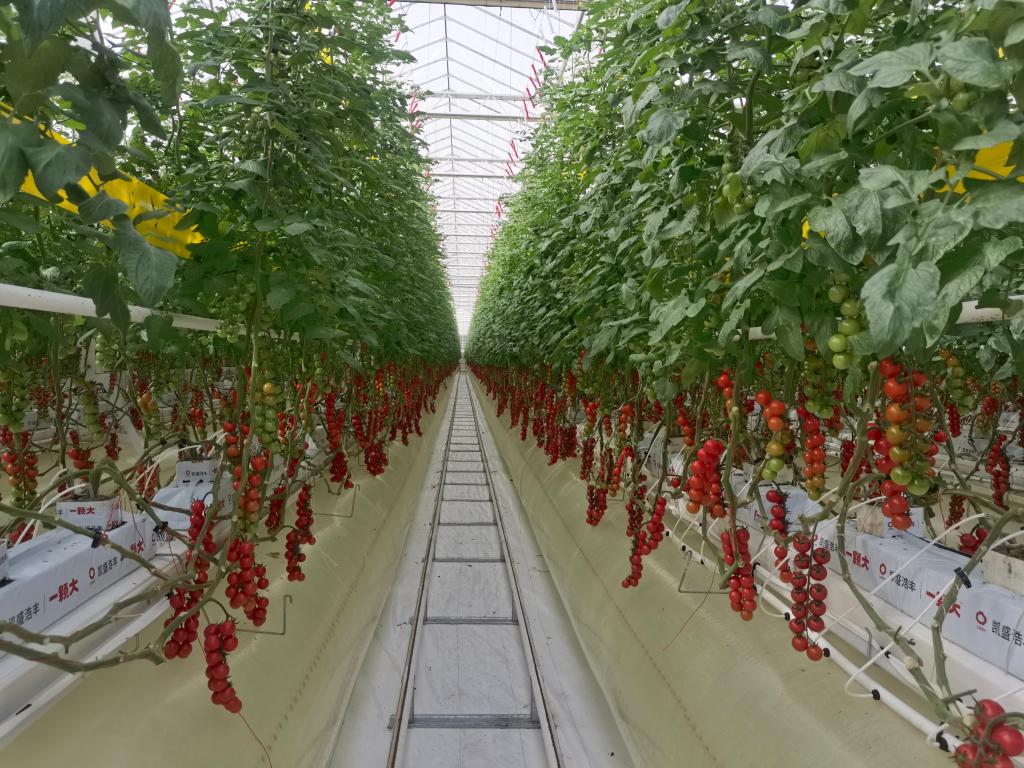 “这个设施温室遍布上万个传感器,它们能感知番茄生长数据并反馈至中央环境控制系统,向执行器发送信号,自动调整每个植株的温光水气肥等生长环境。”产业园生产负责人高宏伟说,生长出的番茄不仅比大田生产的番茄产量扩大五倍以上,品质也提升了。