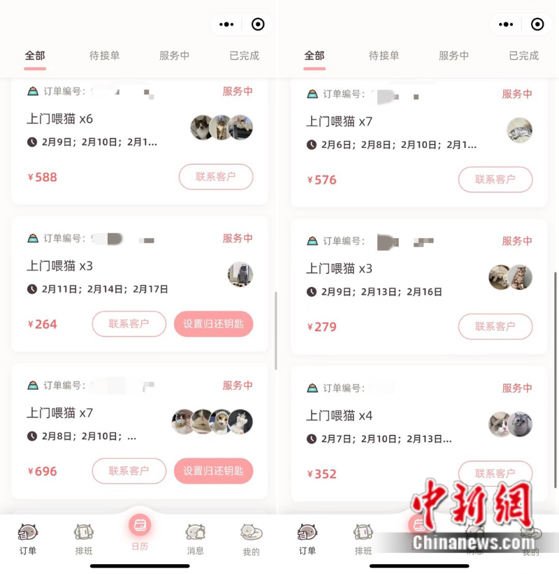 早在两个月前,池女士就陆续接到了预约春节上门喂养的单子,到了1月底,由于订单众多,她不得不封单。“按次数的话有超过150单了,好几天都是一天20单。”按节假日平均80/次的价格来算,这个春节她将收入过万。