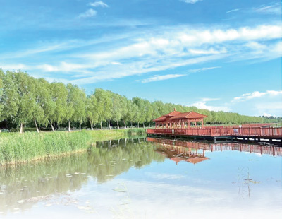 夏季的查干湖大玉儿湿地生态步道,水清岸绿,景色宜人。吉林省松原市前郭县委宣传部供图
