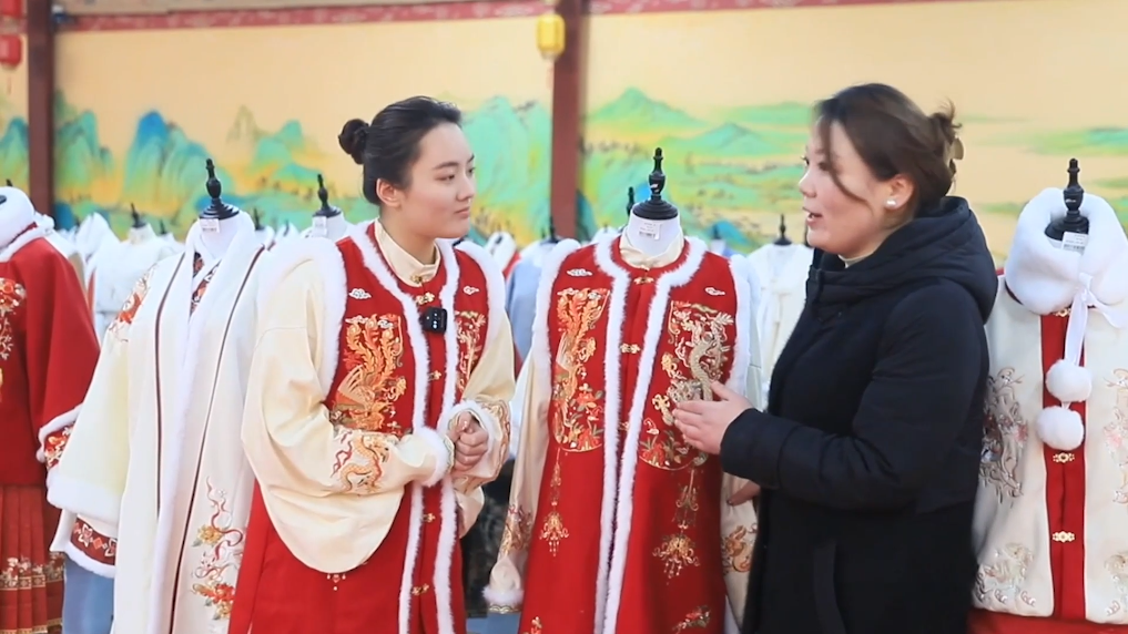 在全国最大的汉服生产基地山东菏泽曹县大集镇,电商主播们正忙着向消费者介绍今年新推出的龙年拜年服。