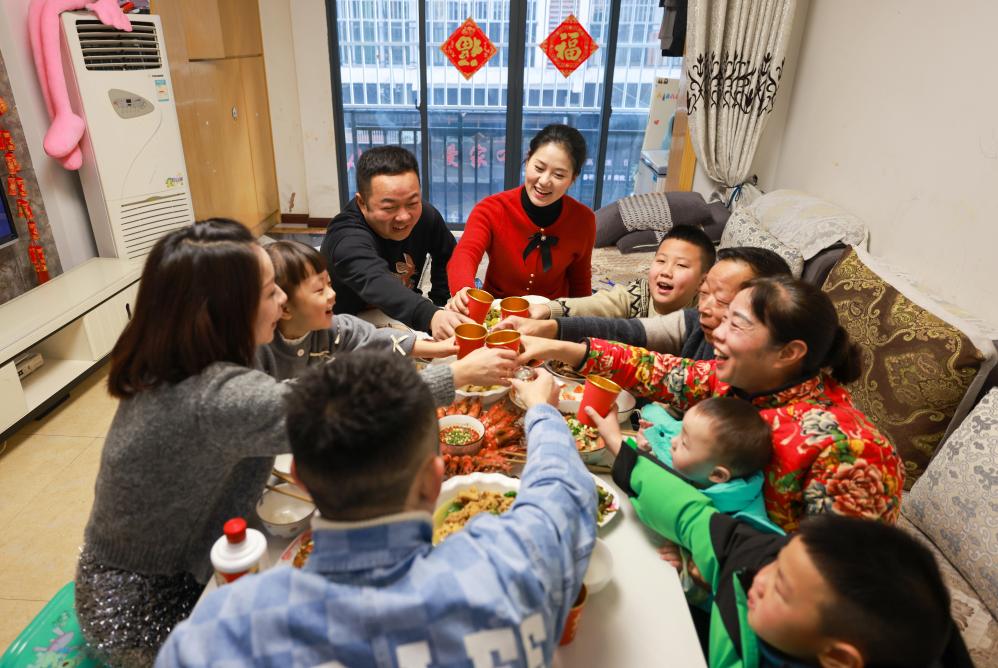 2月9日,贵州省遵义市正安县一户居民在家中吃年夜饭。新华社发(赵永章摄)