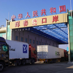 在中俄边境的小城珲春,一大早,一辆辆载满货物的卡车在公路口岸排队通行,一列列装满包裹的列车在铁路口岸缓缓驶出。