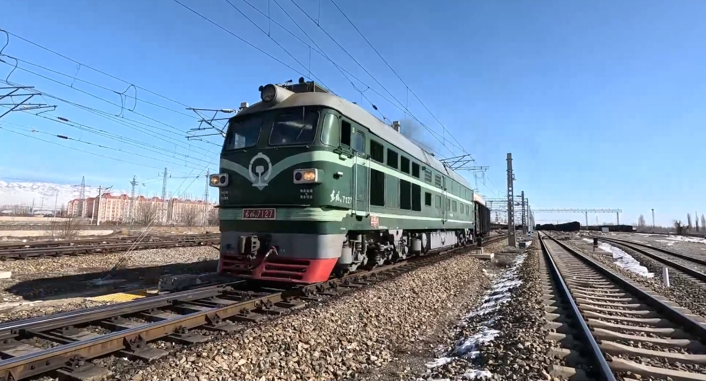 2月18日,正月初九,一列满载日用百货、机械配件、纺织面料等货物的中欧班列从霍尔果斯铁路口岸驶出。(视频截图)