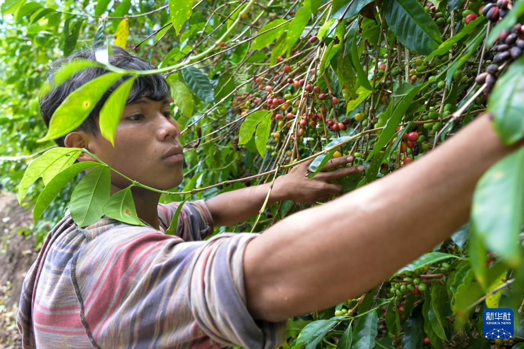 2月19日,在位于巴拿马奇里基省博克特地区的彼德松家族庄园内,一名工人在采摘咖啡豆。新华社记者 陈昊佺 摄