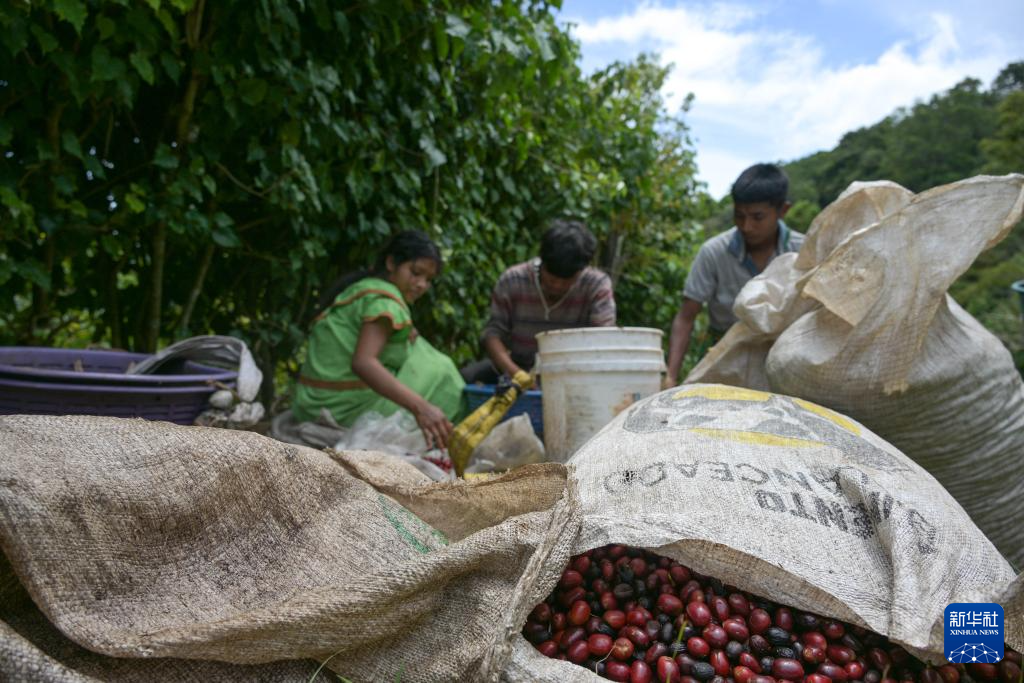 2月19日,在位于巴拿马奇里基省博克特地区的彼德松家族庄园内,工人们在筛选刚采摘的咖啡豆。新华社记者 陈昊佺 摄