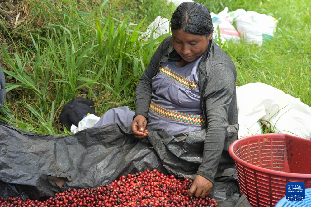 2月19日,在位于巴拿马奇里基省博克特地区的彼德松家族庄园内,一名工人在筛选刚采摘的咖啡豆。新华社记者 陈昊佺 摄