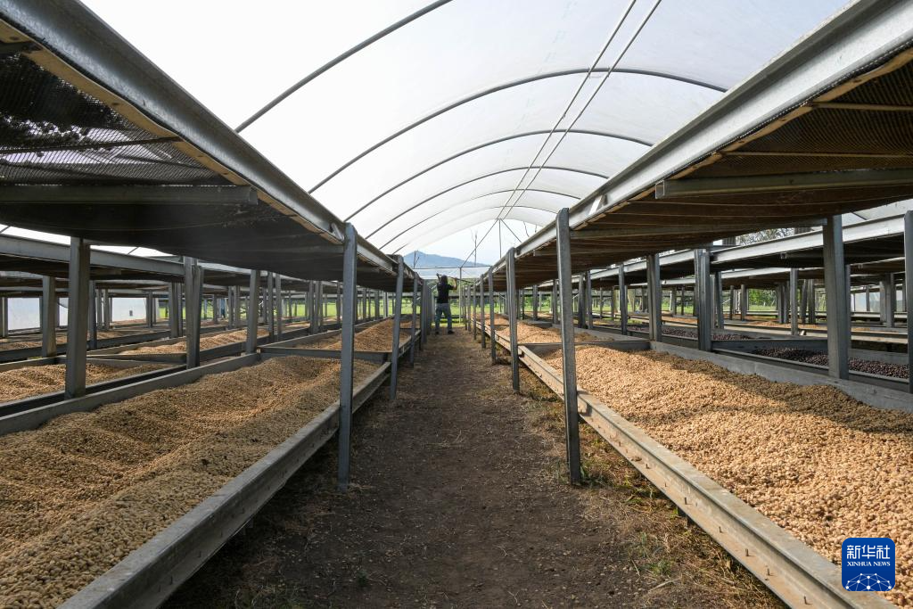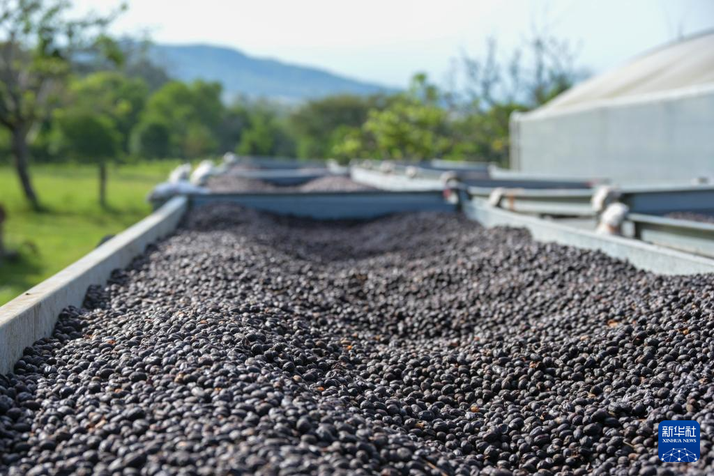 这是2月19日在位于巴拿马奇里基省博克特地区的彼德松家族庄园内拍摄的正在晾晒的咖啡豆。新华社记者 陈昊佺 摄