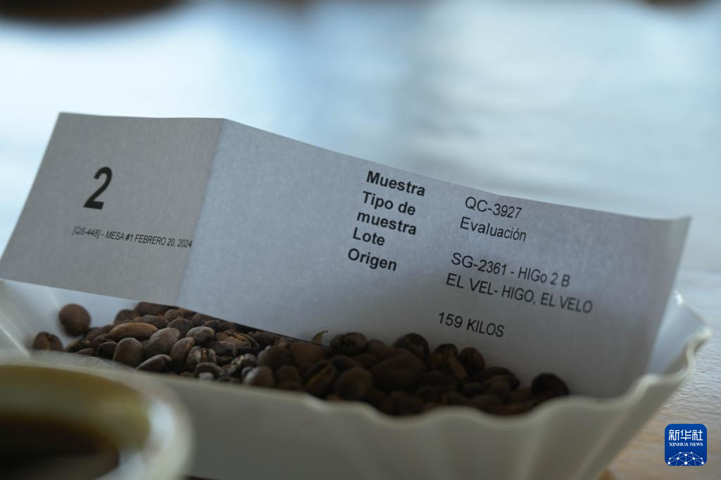 这是2月20日在位于巴拿马奇里基省博克特地区的彼德松家族庄园杯测现场拍摄的一款咖啡豆。新华社记者 陈昊佺 摄