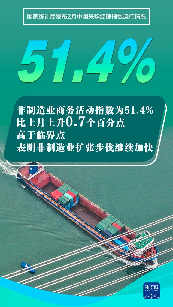 3月1日,国家统计局发布2024年2月中国采购经理指数运行情况显示,2月份制造业采购经理指数、非制造业商务活动指数和综合PMI产出指数分别为49.1%、51.4%和50.9%。
