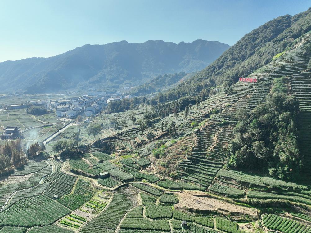 2023年,福建省福鼎市赤溪村被评为第三批全国乡村治理示范村。图为福鼎市赤溪村茶园(2023年12月8日摄,无人机照片)。新华社记者林善传摄