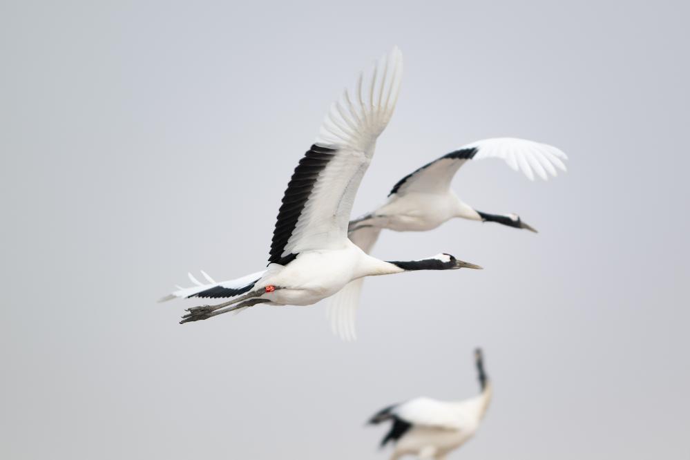 这是在黑龙江扎龙国家级自然保护区放飞的丹顶鹤。新华社记者 王大禹 摄