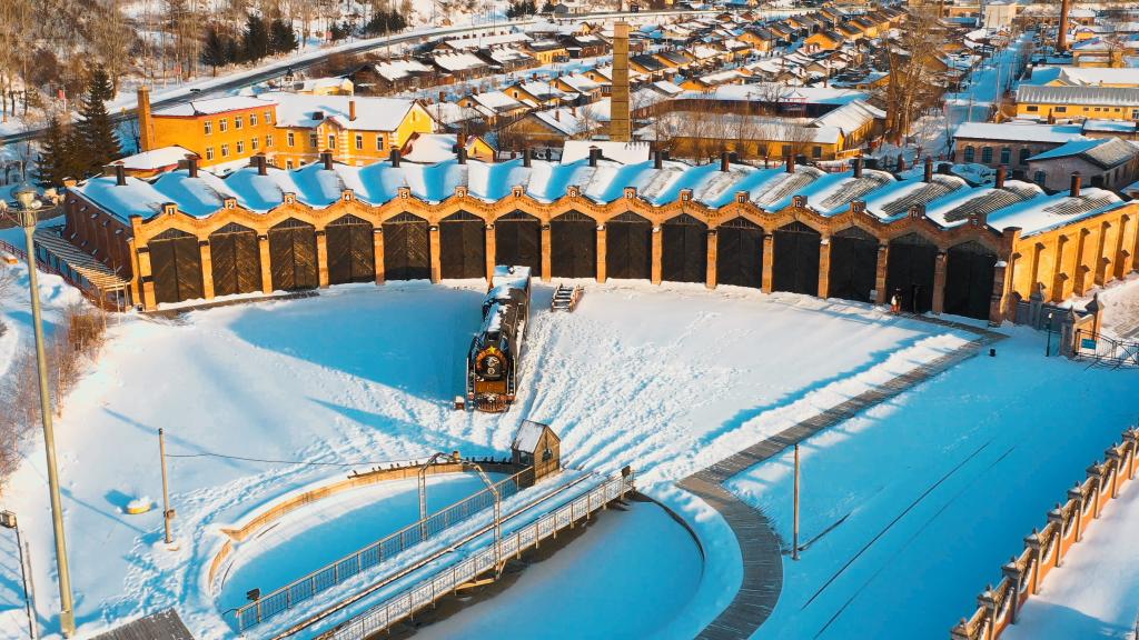 牡丹江市海林市横道河子镇中东铁路博物馆机车库展区。新华社发(范峻辰 摄)
