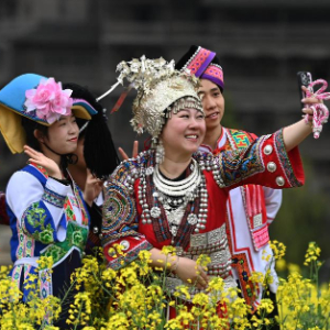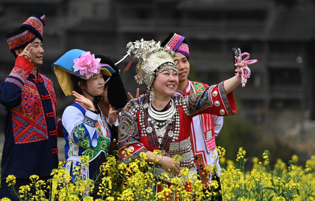 3月14日,游客在贵州省遵义市播州区乌江寨景区游览。新华社记者 杨楹 摄