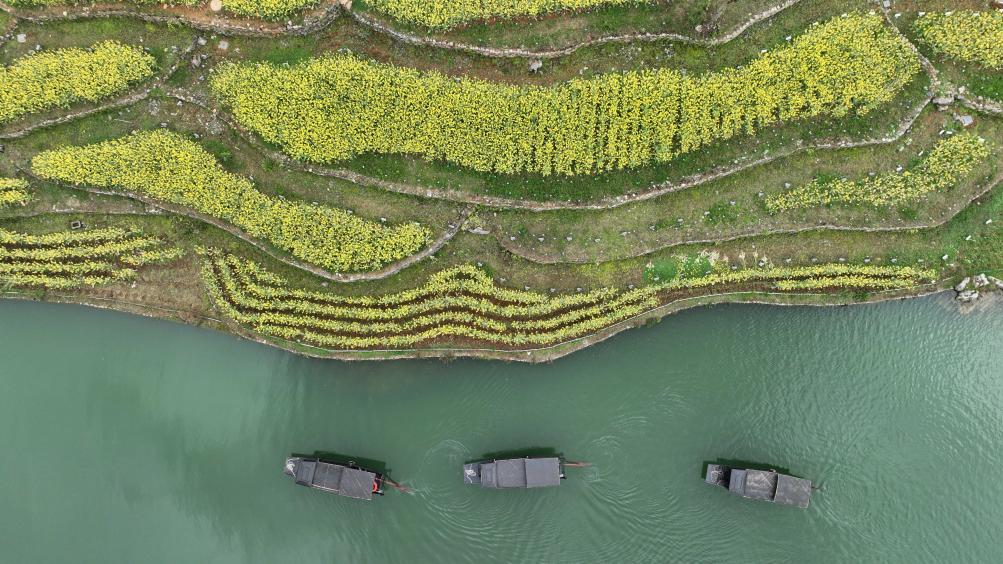 3月14日,贵州省遵义市播州区乌江寨景区一景(无人机照片)。新华社记者 杨楹 摄