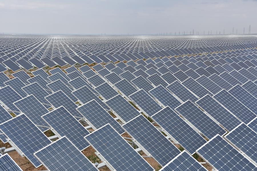 这是宁夏宝丰农光一体化产业园区一角(无人机照片,2020年9月21日摄)。新华社记者 刘海 摄