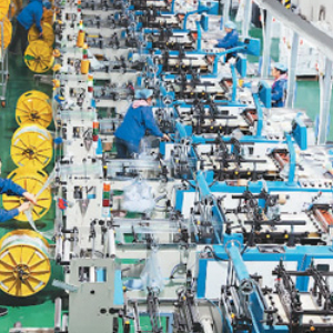 近期,各地企业纷纷开足马力,忙生产、赶订单。图为3月26日,在浙江省湖州市德清县乾元镇的一家塑料制品公司生产车间,工人在赶制出口的食品保鲜袋订单。倪立芳摄(新华社发)