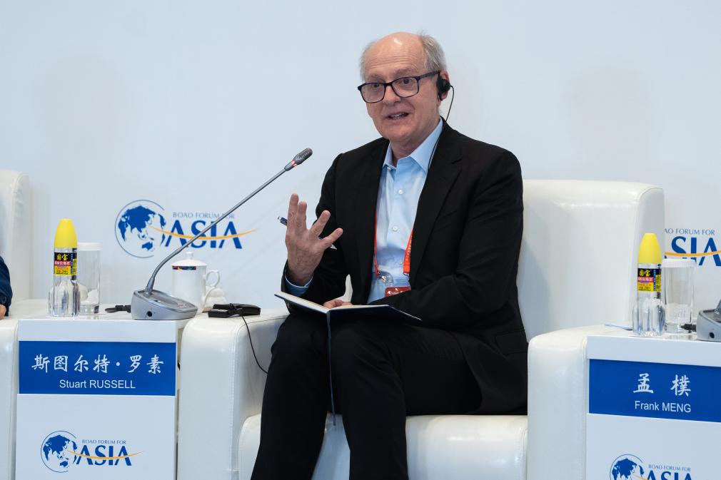 3月27日,《人工智能:现代方法》作者、加州大学伯克利分校计算机科学系教授斯图尔特·罗素在分论坛上发言。新华社记者 曹梦瑶 摄