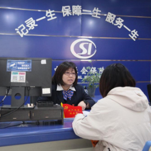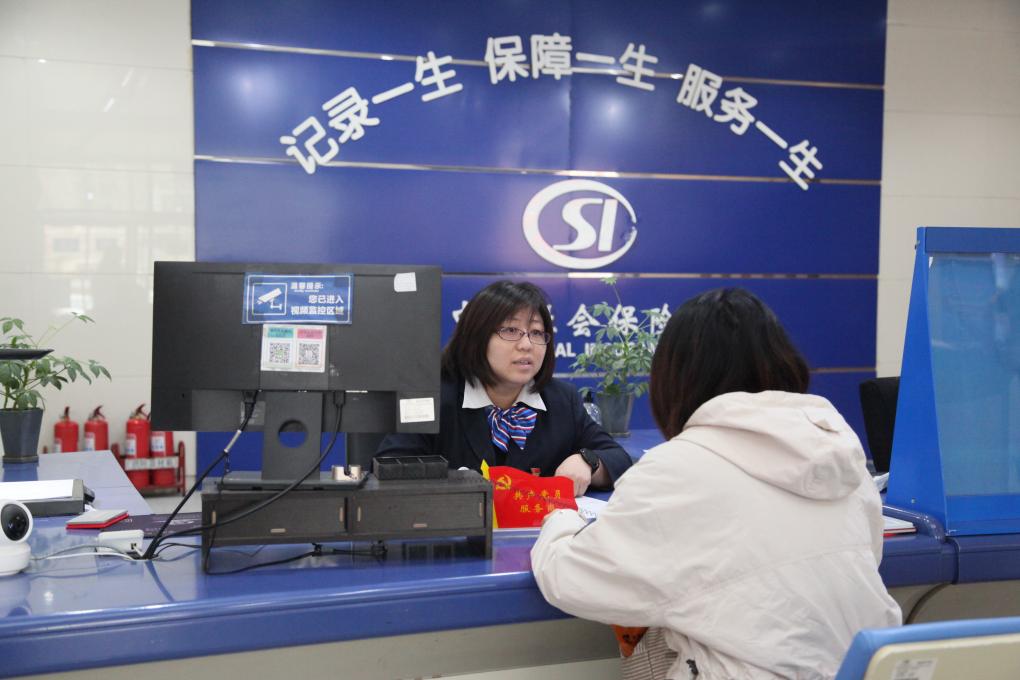 1日,在天津市社会保险基金管理中心南开分中心,工作人员正在为工伤职工办理异地就医备案。(受访者供图)