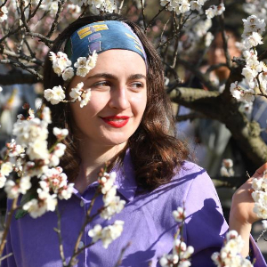 3月30日,一名外国游客在山东省青岛市中山公园梅园拍照打卡。 新华社发(王海滨 摄)