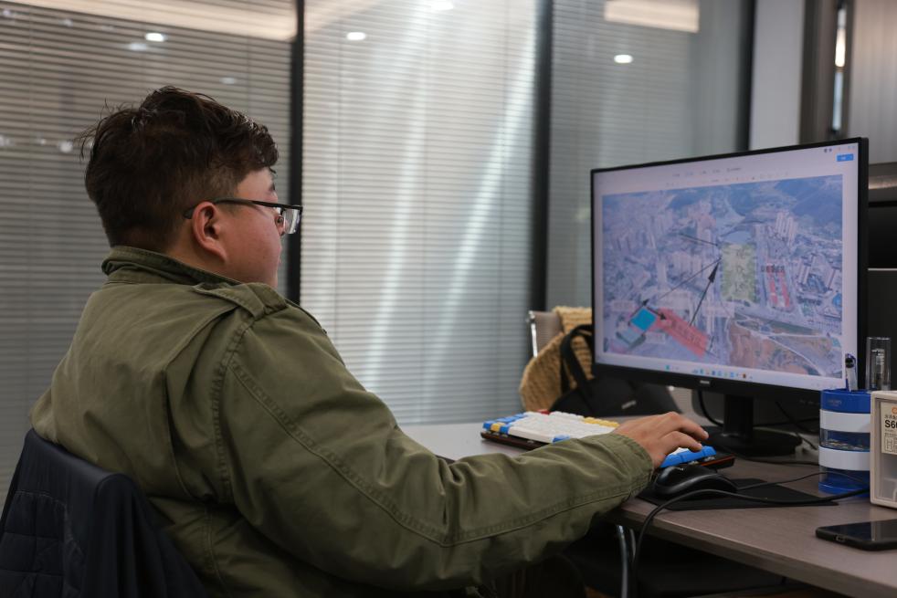 1月23日,贵州省数智文化科技有限公司的工作人员在修改无人机表演的相关示意图。新华社记者 郑明鸿 摄