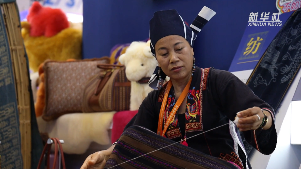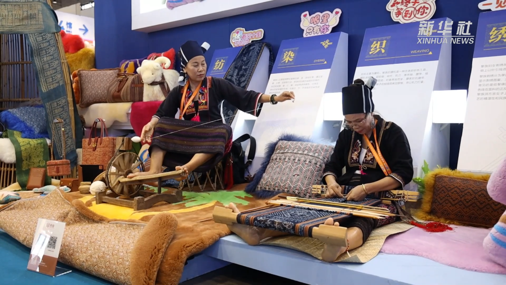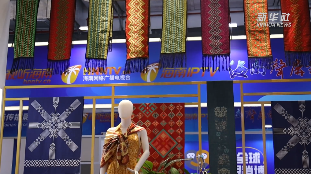 一号展馆内的海南国货潮品馆,汇聚了一批非物质文化遗产系列展品,其中黎锦系列得到广泛关注。据了解,其通过传承加创新的方式,既保留了黎锦的原始韵味,又注入了现代时尚元素,使得这些文创产品不仅具有艺术价值,更兼具实用性。