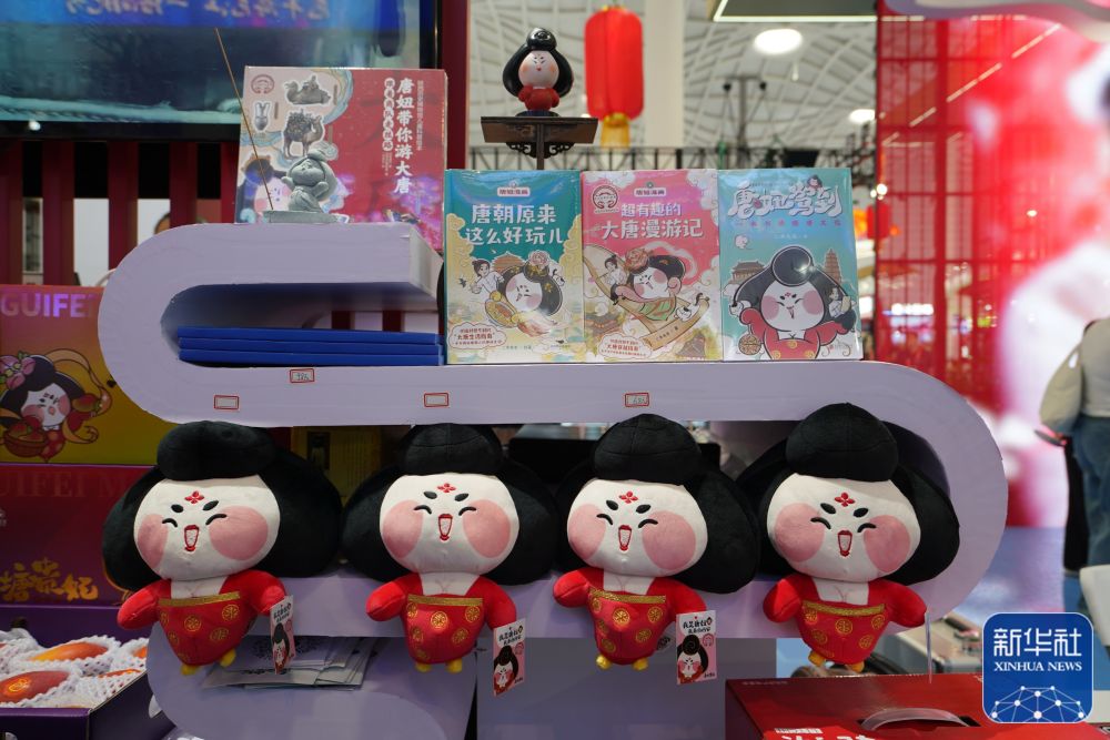 国货特色潮品展区陕西展台展示了“唐妞”系列文创产品。“唐妞”的卡通形象取材于陕西历史博物馆馆藏文物——唐代彩绘仕女俑。新华社记者杨冠宇 摄