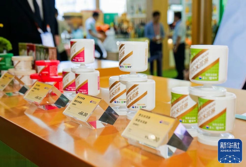茅台展区展示的茅台冰淇淋。近年来,茅台不断推出文创产品,品牌年轻化成效显著。新华社记者王楚天 摄