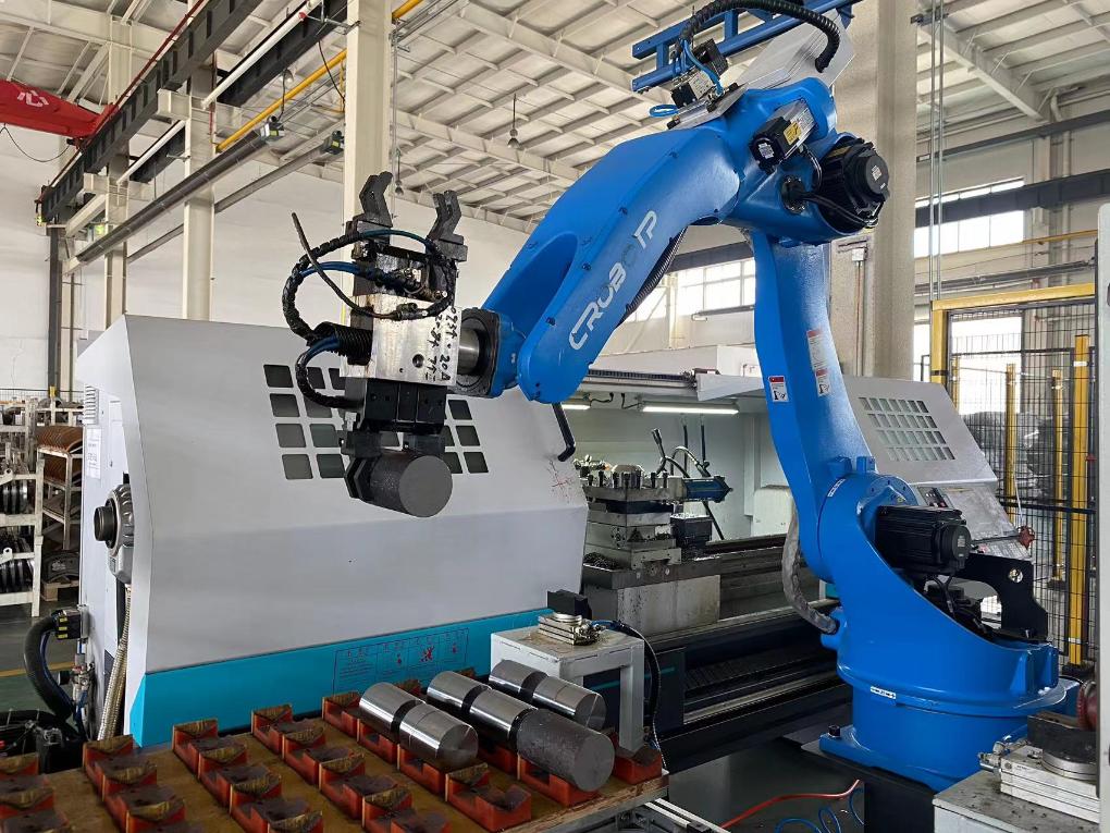 在奥瑞(天津)工业集团股份有限公司,配重轴自动加工设备正在抓取零部件。新华社记者 尹思源 摄