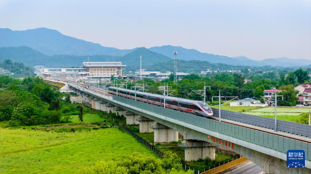 池黄高铁位于皖南山区,起自池州站,途经安徽省池州市贵池区、青阳县,黄山市黄山区、黟县,接入黟县东站,正线全长125公里,设计时速350公里。池黄高铁沿线山高谷深,沟壑纵横,地形地貌复杂,施工难度大。自2019年12月开工建设以来,国铁集团组织各参建单位优质高效推进工程建设,建成了太平湖特大桥、云山特大桥等55座桥梁,岭上村隧道等34座隧道。