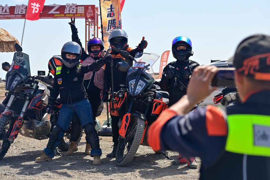 5月2日,在新疆克拉玛依市乌尔禾区,车友在无人区体验越野骑行。新华社记者 丁磊 摄